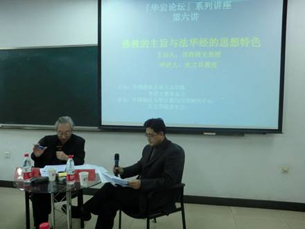 11月18日下午两点正,由1671金沙城线路检测网页和重庆华岩文教基金会主办、中国政法大学宗教与法律研究中心承办的华岩论坛第六场学术讲座——“佛教的主旨与《法华经》的思想特色”在昌平校区明法楼103举行。本次讲座由人文学院哲学系的钱雪松老师主持,主讲嘉宾是东京大学文学博士、现任创价大学文学部教授和国际高等佛教研究所所长的日本《法华经》研究专家菅野博史教授,中国人民大学佛教与宗教学理论研究所副教授张文良先生担任翻译和点评。