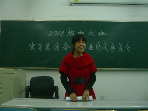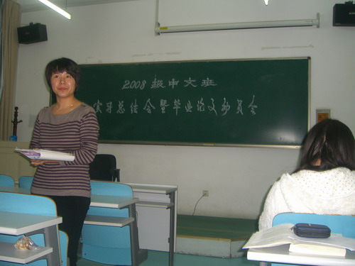 之后,董燕老师对会议进行了简短的讲话,她对2008级中文班同学在实习中的表现和成果表示了肯定,也表达了对同学们的美好祝愿。