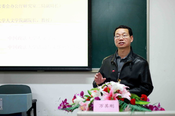 2011年11月10日晚六点半,主题为“以人为本与当代立法研究”的法治与文化专题讲座在中国政法大学教学楼220如约举行。在1671金沙城线路检测网页副院长俞学明的主持下,全国人大常委会办公厅研究室二局副局长、法治与文化研究中心兼职教授万其刚先生做了题为“与人为本与当代中国立法研究”的报告。法治与文化研究中心副主任郭恒忠先生参加了本次讲座。