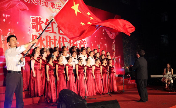 为庆祝中国共产党建党90周年,研究生院于6月9日晚在新一号楼前广场举办了以“歌红色经典,咏时代华章”为主题的研究生红歌合唱比赛。我院分党委书记杨军、副院长俞学明以及李勇、王培、罗世琴、邸维蛟等6位老师和25名研究生组成的代表队,以一首深情的《红旗飘飘》打动观众和评委,荣获二等奖,充分展现了我院师生的蓬勃情怀和爱党热忱!