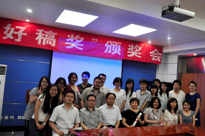 接下来进行了人文报“好稿奖”的颁奖环节以及新一任主编,副主编的受聘仪式。人文报的新一任学生班底也正式产生,分别是主编:凌君,常务副主编:马雄伟以及阮梦诗、陶文权等8位副主编。