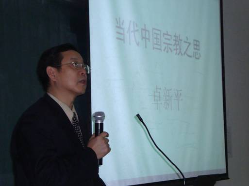 卓新平老师从当今世界宗教在国际政治中的重要地位日益凸显讲起,对宗教与法律的关系以及如何理解中国目前的宗教现状与走向等问题作出了深入反思。卓老师从宗教的历史理解与中国的社会政治关系、当代中国宗教的现状以及中国宗教未来发展的可能形态等三个层面详尽阐明了他的理解。结合中国政教关系中的理论争议与现实特点,卓老师认为目前中国宗教在“一体多元”的整体特点下存在着三大“板块”。他还引入宗教世俗化等热门话题,从社会服务、文化承继和信仰建构三个层面对宗教未来积极发展的可能方向作出了独到的判断。最后,卓新平研究员指出:在当代中国社会的大好形势下,应该对中国宗教的意义和作用重新认识,重加评价,实现宗教与社会和谐发展的“双赢”。