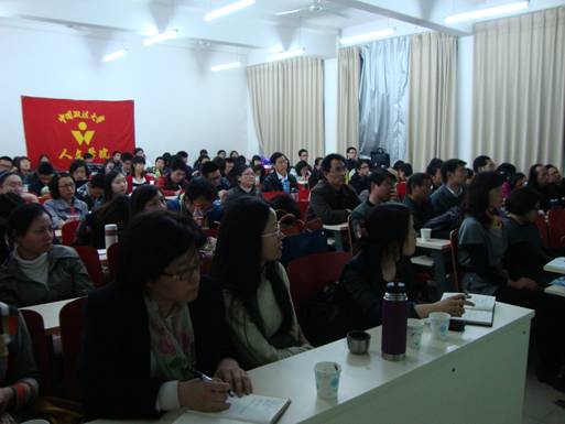 中国社会科学院学部委员、世界宗教研究所所长、中国宗教学会会长、著名宗教学家卓新平研究员到会,祝贺“宗教与法律研究中心”的成立,并为“华岩论坛”开坛做了题为“当代中国宗教之思”的演讲。中国政法大学党委副书记高浣月教授出席并致辞,指出“宗教与法律研究中心”的成立对于中国政法大学的学科建设和校园文化建设都具有重要意义,并对中国宗教学会和卓新平研究员对中心的鼎力支持表示感谢。大会和论坛由人文学院副院长、中心主任俞学明教授主持。我校二十余位老师和百余名同学济济一堂,参加了大会并聆听了讲座。