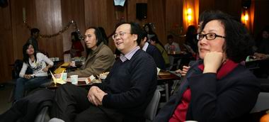 之后,老师与同学们竞相登台,纷纷献上精彩节目。曹万成老师演唱了歌曲《三套车》,游兆和老师带来了情并茂的诗朗诵,而李虎群老师的一段昆曲更是将现场带入古色古香的氛围。同学们也不甘示弱,远道而来的研究生院的师兄师姐们的合唱《心愿》、相声《抬杠》和10级同学们的情歌对唱也赢得同学们热烈的掌声。