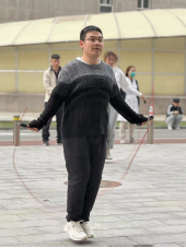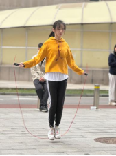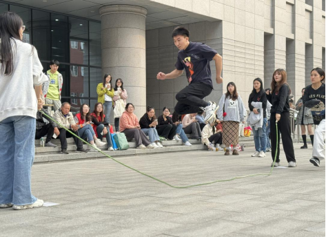 只见各位选手们一字排开,个个憋足了劲儿,一张张青春的笑脸上表现出了志在必得的信心。哨声一响,运动健儿们迅速启动,一条条小绳舞起了风声,一双双手臂摇得飞快,舞动绳子的他们就像空中跳跃的精灵,绳子在他们的脚底下“嗖嗖”地穿过。个个都表现出了不凡的实力。各位参赛选手势力强劲,比赛气氛十分紧张,但是我院22级的朱祺同学在激烈的角逐中不慌不忙、气定神闲,以一分钟181个的好成绩荣获本次比赛的第五名。