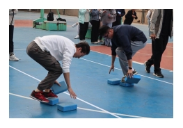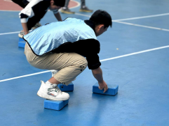 本项比赛是下午的第一项赛事。“预备,开始!”随着裁判员的一声令下,同学们迅速进入状态,弯腰、抬脚、换石,只见同学们手脚并用灵活向前,因为限制在方寸之间,前进的每一步都变得十分艰难,无论是观众还是参赛队员都屏气凝神,在追求平稳的同时也与时间进行着较量。我院22级的吕新龙同学和23级的武超月同学,虽然都是第一次参与本次项目,但不慌不忙,脚步稳健,颇有大将风度,在同赛道对手紧追不放的情况下,在以矫健的步伐,分别以1分34秒84和2分8秒45的好成绩荣获本次比赛男子组和女子组的第六名。