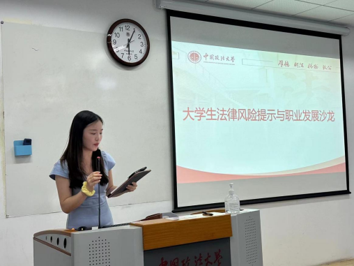 2024年9月13日18时,“大学生法律风险提示及职业发展沙龙”于学院路校区综合楼0511教室如期举办。本次活动由2024级研究生团支部组织承办,两位主讲人分别是来自北京市朝阳区人民法院二级法官杨洁和四级法官助理江宇。活动由人文学院2024级研究生团支部书记张宇圻主持。两位法大毕业生校友为同学们带来了精彩纷呈、引人入胜的讲解与分享。人文学院2024级研究生齐聚一堂,共同学习师兄师姐带来的案例分析、职业发展建议以及在法院工作的感悟。
