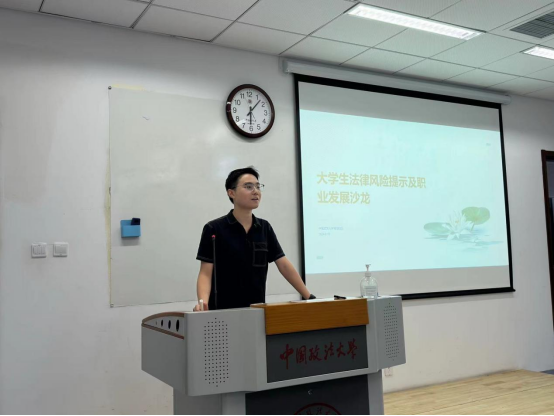 本次沙龙主要包含了三个方面的内容:常见法律问题分享、职业发展经验分享和真实的法院生活。首先江宇师兄引用多个案例向同学们传达了大学生经常遇到的一些法律问题,如网络杀猪盘、校园贷与培训贷、刷单陷阱、预付式消费、租房坑等等。他提到,社会上的各种诈骗手段花样百出,即使是高学历青年也往往难逃陷阱,他也希望同学们在日后能够多加注意,警惕各种潜在的危险,避免涉及法律风险之中。